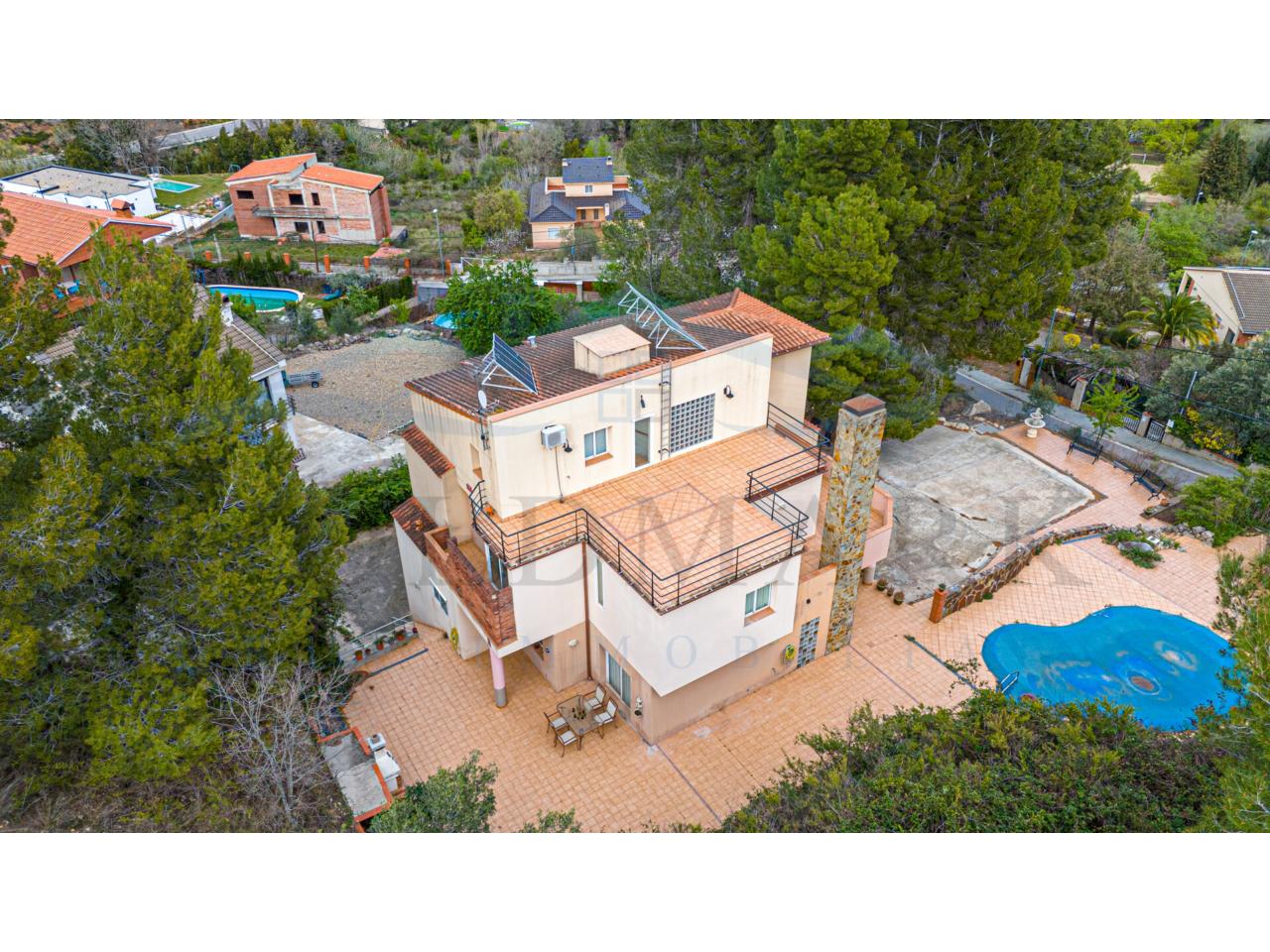 Casa 381 m2 solar 2.013 m2 5 habitaciones (2 suites, 2 dobles y 1 sencilla), 3 baños unos con jacuzzi, 1 aseo, amplio salón comedor con chimenea de 52m2, estudio abuhardillado, ascensor, cocina office con despensa, sótano, piscina, ventanas climalit, PLACAS SOLARES Y CALEFACCIÓN AEROTERMIA POR SUELO RADIANTE, (deducción 50% del IBI x 7 años), ósmosis, descalcificadora e hidrogeno, carpintería exterior de aluminio con doble acristalamiento, alarma total con inhibidores, barbacoa, 3 terrazas, cuarto de lavadero y plancha, 8 armarios empotrados, 2 trasteros, casa totalmente ADAPTADA para personas con MOVILIDAD REDUCIDA, Año 2.000 IBI 1.600€ VIVIENDA LISTA PARA ENTRAR A VIVIR