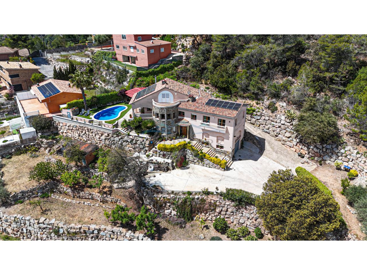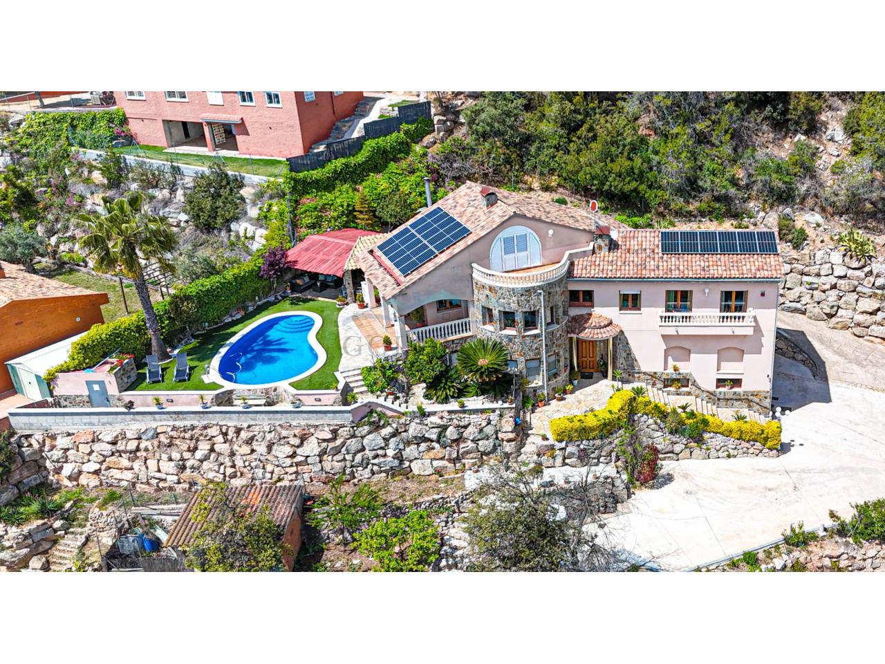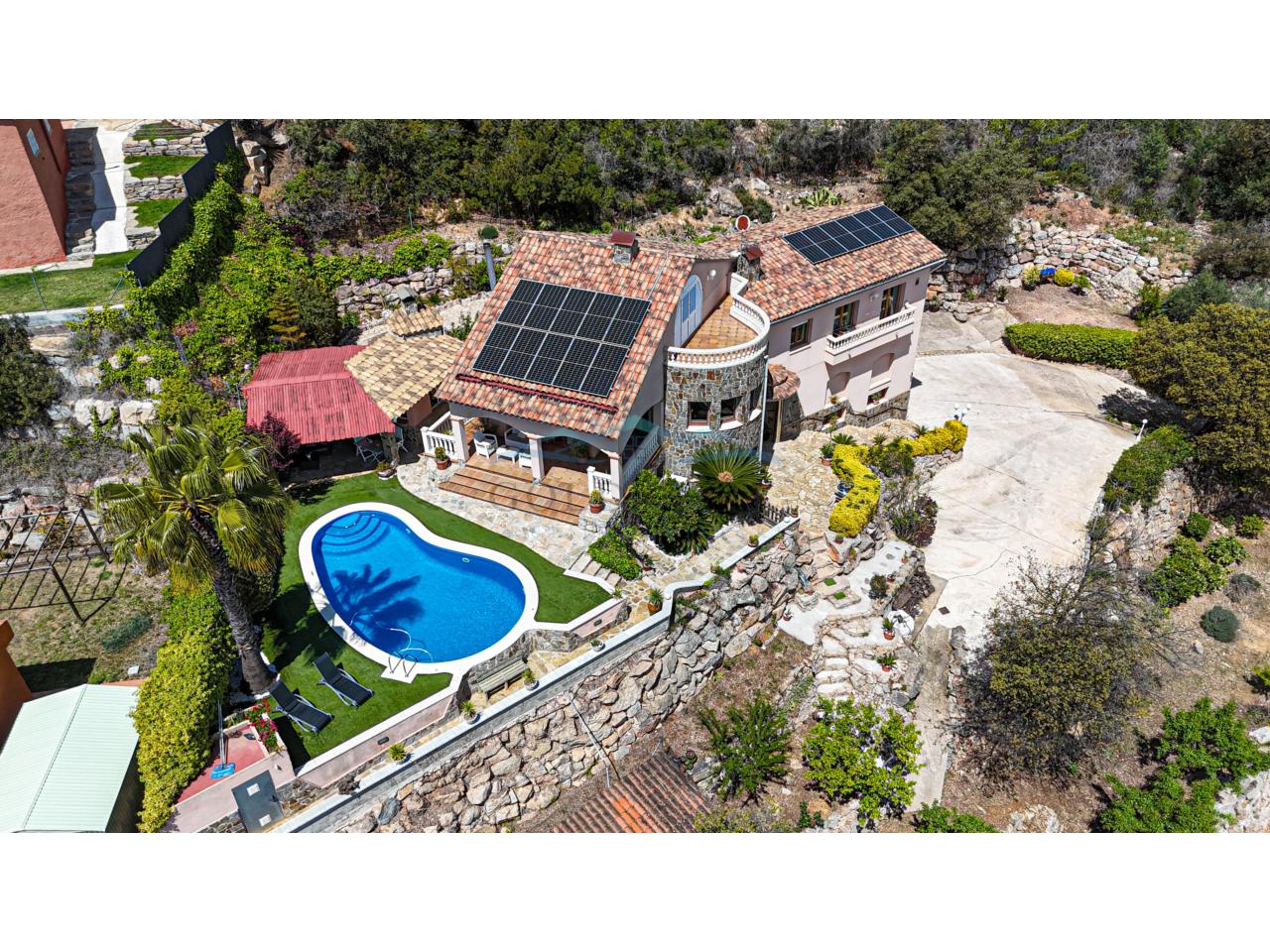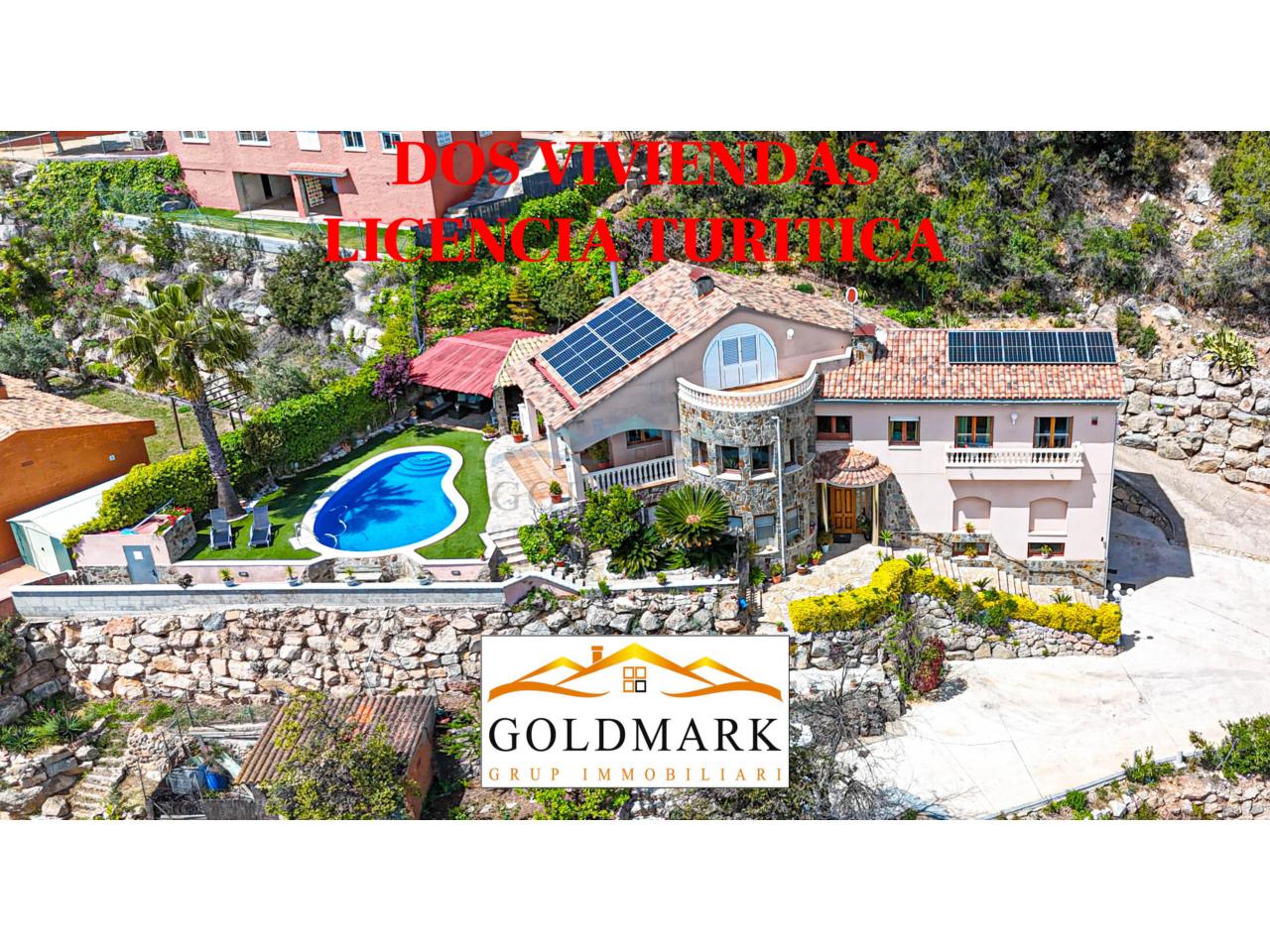 Casa 347 m2 Solar 2430m2, 2 viviendas, LICENCIA TURISTICA, 6 habitaciones 4 baños 2 cocinas, barbacoa, piscina, chimenea, aire acondicionado y calefacción por AEROTERMIA, ventanas doble cristal, placas solares, Año 2003 Orientación Sur IBI 1.000€ (bonificado por placas solares).